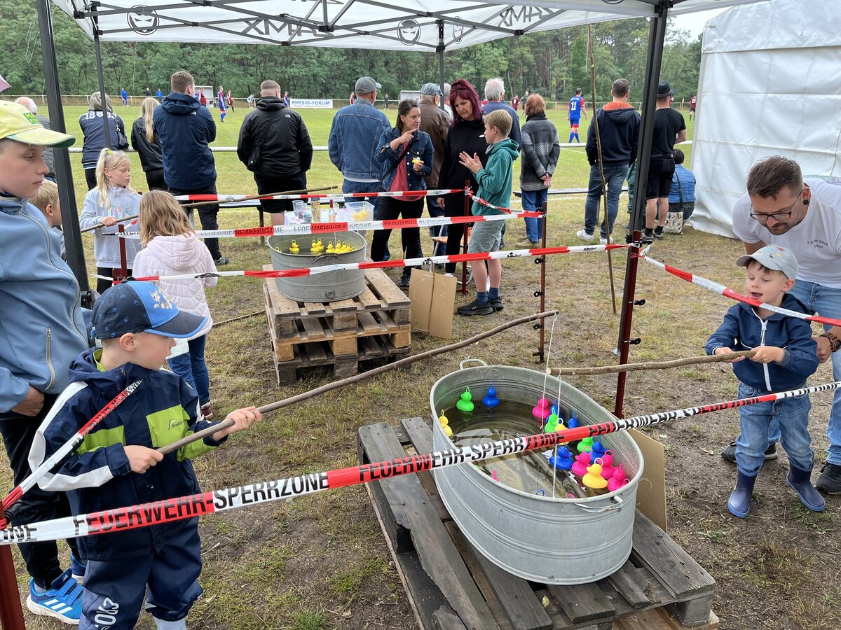 Der Samstag begann um 15 Uhr mit der offiziellen Eröffnung durch die Ortsvorsteherin Elvira Vogel und die stellv. Bürgermeisterin Anja Zajic. Bei Kaffee und hausgemachtem Kuchen, den die Sornoer Frauen gebacken haben, konnten sich die Gäste stärken, bevor das abwechslungsreiche vielfältige Nachmittagsprogramm begann. Sportlich ging es weiter mit einem Fußballspiel, gefolgt von einer liebevoll einstudierten Kinderaufführung der Freizeitbande Sorno. Die kleinen Gäste konnten sich beim Entenangeln, Ponyreiten, auf der Kinderdisco oder bei der spannenden Schatzsuche nach kleinen Figuren namens Otti Fanten im Sandkasten austoben. Die Punkte, die fleißig gesammelt wurden, konnten an der Tombola gegen Preise eingetauscht werden. Hier wurde im Vorfeld gut erhaltenes Spielzeug in Sorno gespendet und mit weiteren Preisen an die Kinder verlost.