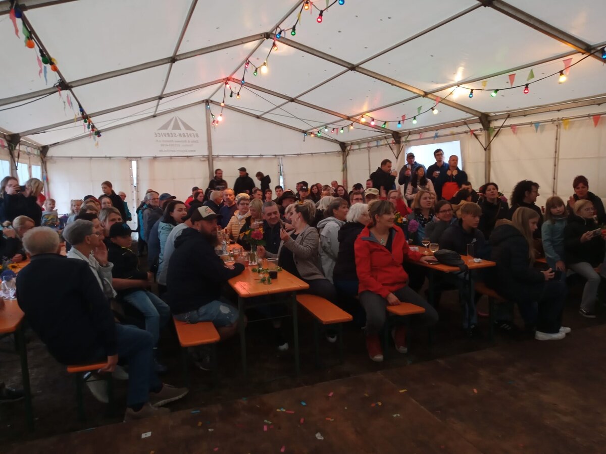 Die „Falkenberger Blasmusikanten“ sorgten im Anschluss für stimmungsvolle Blasmusik, die zum Tanzen anregte. Für das leibliche Wohl sorgte Alt Nauendorf mit einem deftigen Mittagstisch.