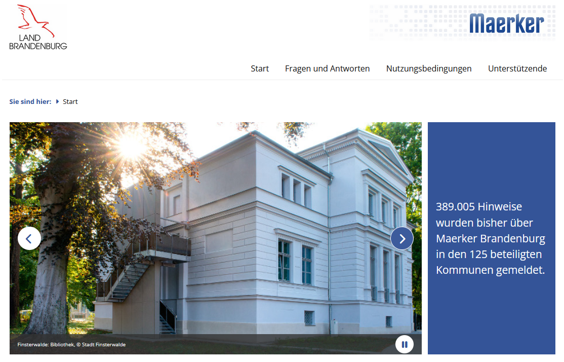 Über Maerker können Bürgerinnen und Bürger den Brandenburger Kommunen schnell und unkompliziert melden, wo sie ein Infrastrukturproblem festgestellt haben – etwa gefährliche Schlaglöcher, wilde Müllablagerungen oder Barrieren, die insbesondere ältere oder mobilitätseingeschränkte Menschen beeinträchtigen. Auch die Stadt Finsterwalde nutzt das Maerker-System seit Jahren erfolgreich, um Hinweise aus der Bürgerschaft effizient aufzunehmen und die Bearbeitung zu koordinieren.
